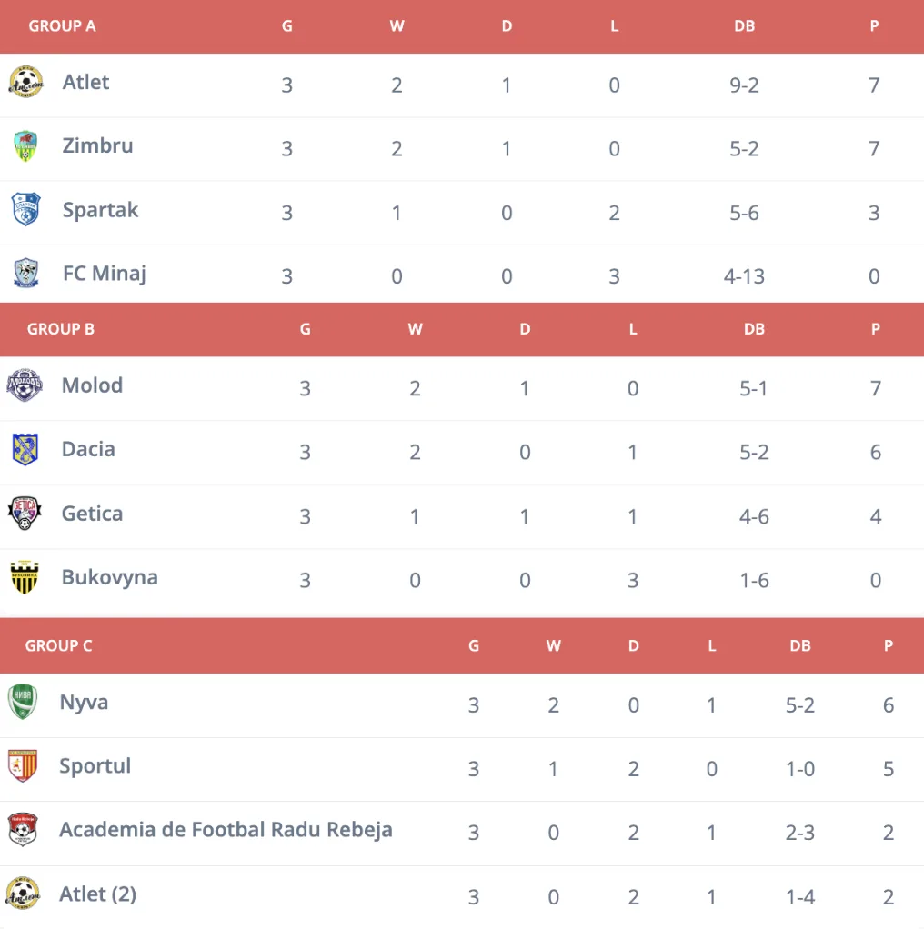 CS Getica a obținut patru puncte: victorie cu Bukovyna (2-1) și remiză cu Molod din Ucraina (1-1). Academia de Fotbal Radu Rebeja a acumulat două puncte: remize cu CS Getica (0-0) și FC Sportul (0-0).