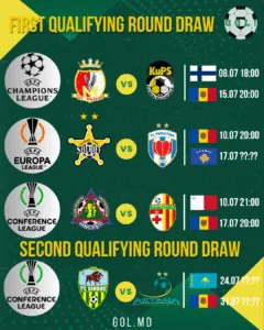 Cupele europene A devenit cunoscut programul exact al meciurilor din primul tur preliminar al cupelor europene. FC Zimbru și FC Astana au făcut schimb de meciuri 22.06.2025 12:31 » GOL.MD