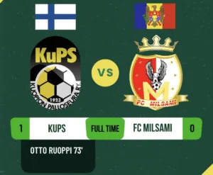 Cupele europene FC Milsami a cedat în fața formației finlandeze KuPS în prima manșă a turului întâi preliminar al Ligii Campionilor 08.07.2025 19:53 » GOL.MD