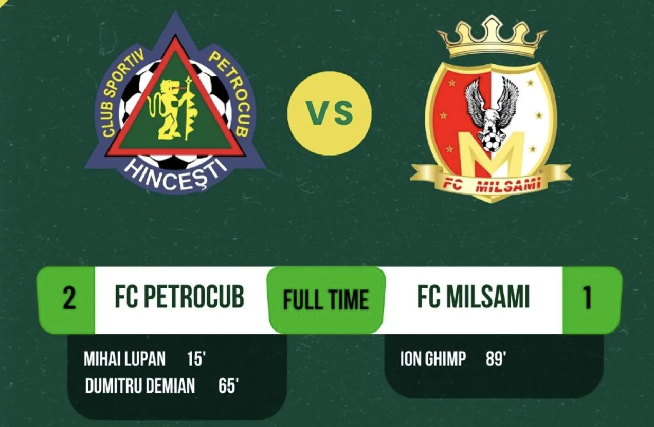 Pe Stadionul Municipal Hîncești, pe 31 august, a avut loc partida etapei a 11-a din divizia superioară dintre FC Petrocub și FC Milsami. Jocul s-a încheiat cu victoria gazdelor, scor 2-1.