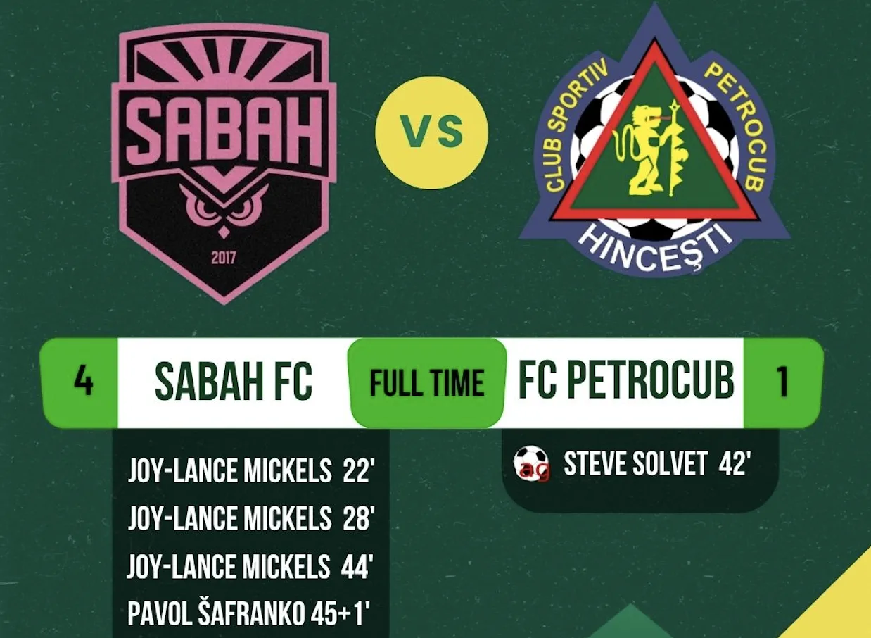 Pe teren propriu, FC Petrocub a pierdut cu 0-2 în fața echipei Sabah FC. Cu scorul general de 1-6 după cele două manșe, echipa din Hîncești își încheie parcursul în cupele europene.