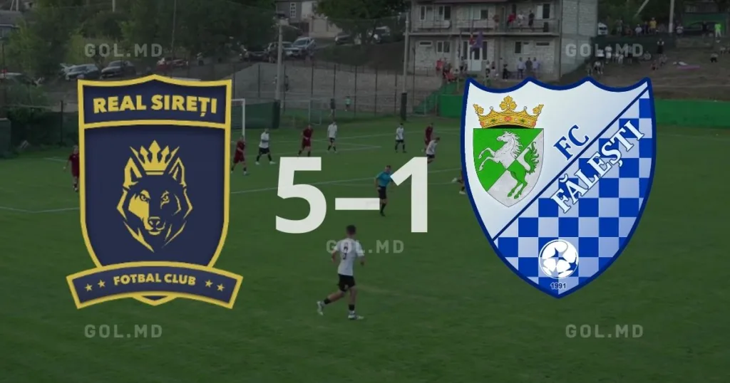 Pe Stadionul Sătesc Sireți, pe 30 august, s-a disputat partida etapei a șasea din Liga 1 dintre FC Real Sireți și FC Fălești, echipe care evoluează în Grupa A. Gazdele s-au impus la scor, 5-1.