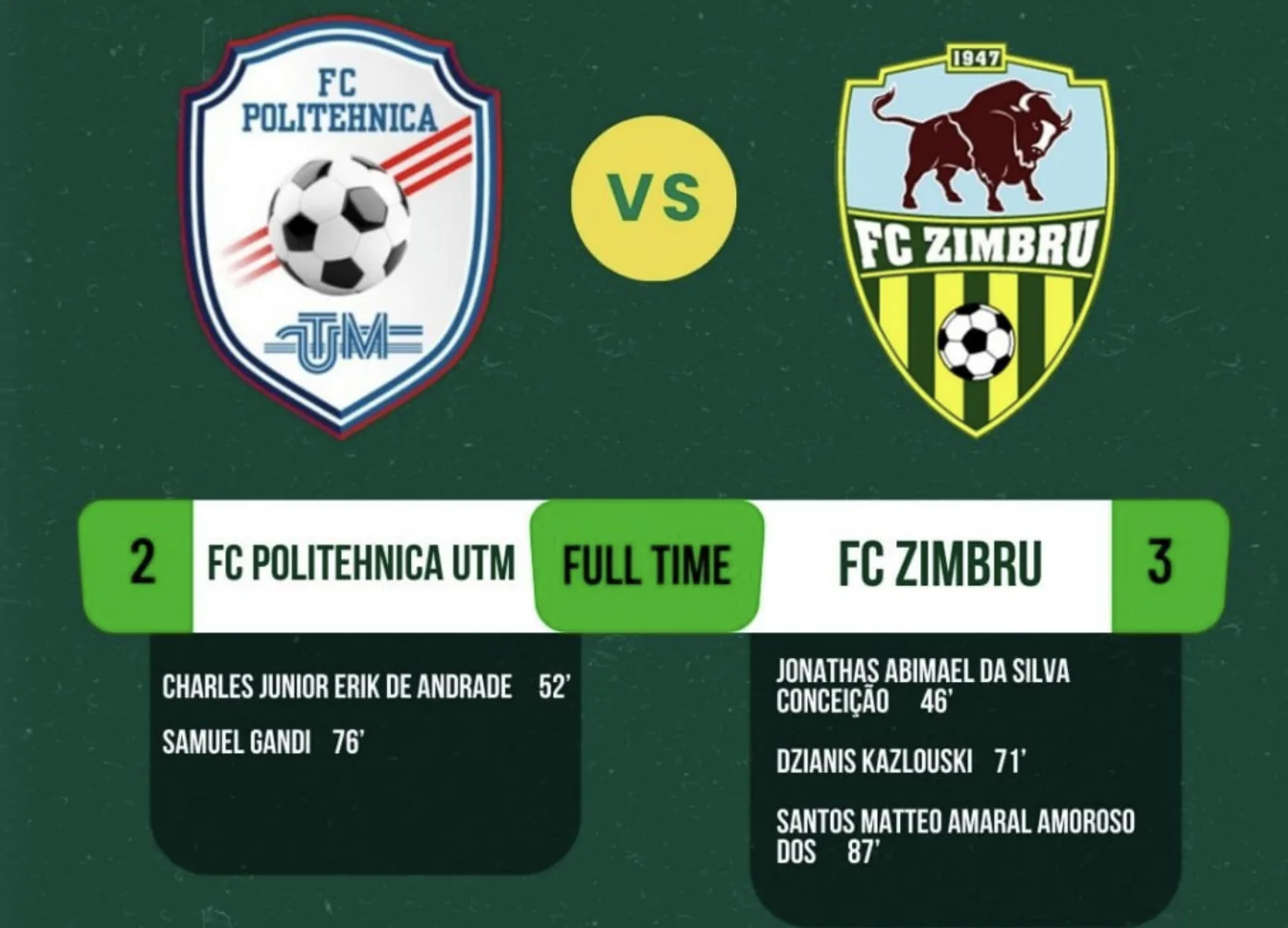FC Zimbru a smuls victoria în ultimele minute în fața FC Politehnica UTM, în meciul etapei a 14-a din divizia superioară