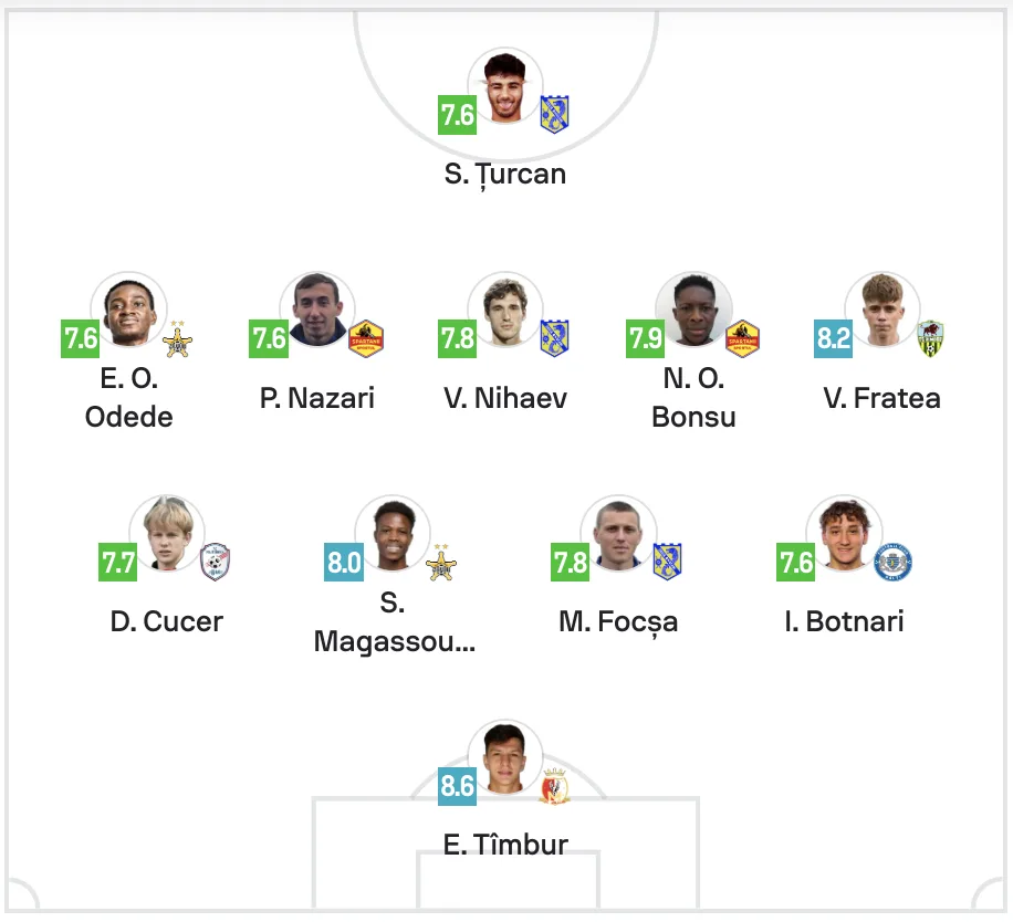 Аналитический портал Sofascore 12 августа представил символическую сборную восьмого тура высшего дивизиона. В нее вошли три футболиста «Дачии Буюкань», по два игрока ФК «Шериф» и СФК «Спартаний Спортул», а также по одному представителю ФК «Зимбру», ФК «Политехника УТМ», ФК «Милсами» и СФК «Бэлць».