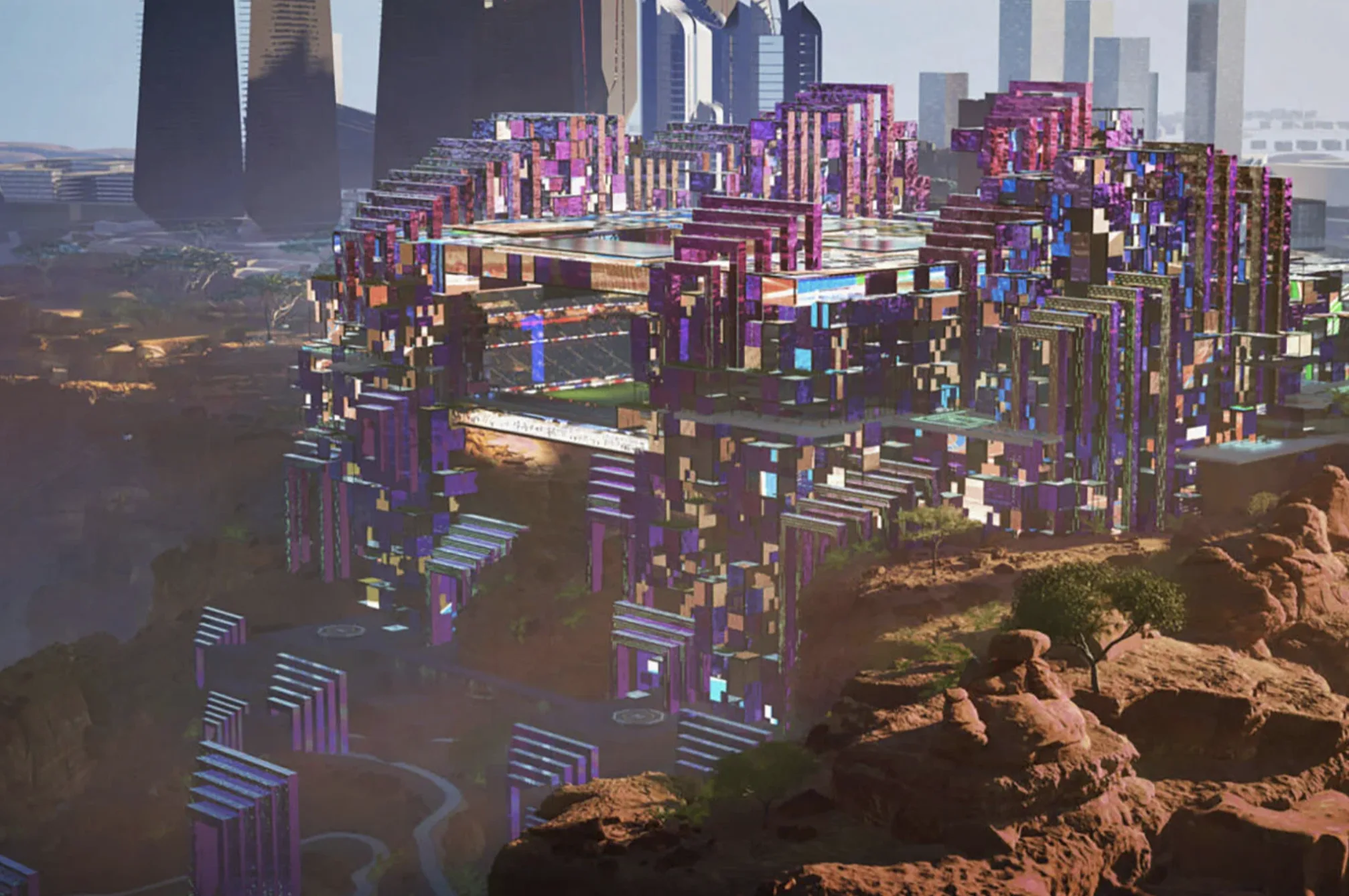 Стадион «Неом» станет частью футуристического проекта «Лайн-Сити» в Саудовской Аравии — города-небоскреба длиной 170 км и высотой выше Эмпайр-стейт-билдинг. Арена будет расположена на высоте 350 м над уровнем моря, доступ к ней обеспечат скоростные лифты и беспилотный транспорт. Здесь пройдет четвертьфинал ЧМ-2034, а после турнира стадион станет домашней ареной клуба «Неом Спортс Клаб».