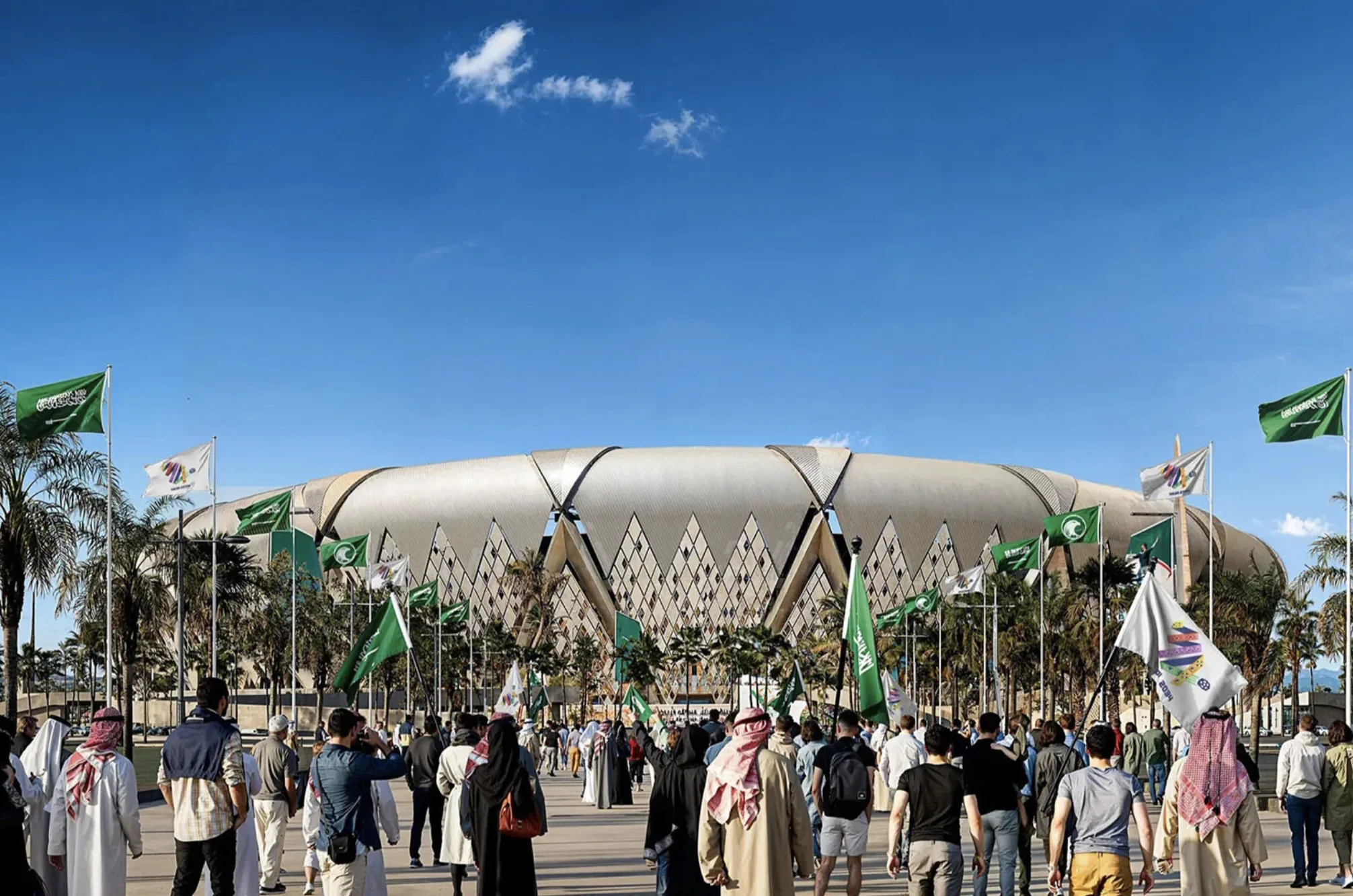 Международный стадион им. короля Салмана в Эр-Рияде станет крупнейшей ареной ЧМ-2034 и примет матч-открытие и финал. Его проект, созданный компанией Populous, вдохновлен пейзажами Саудовской Аравии и символизирует семя, пробивающееся сквозь землю. К 2029 году арена будет готова принять болельщиков, предлагая 2200 VIP-мест, 300 VVIP-мест и панорамную крышу с видом на столицу.